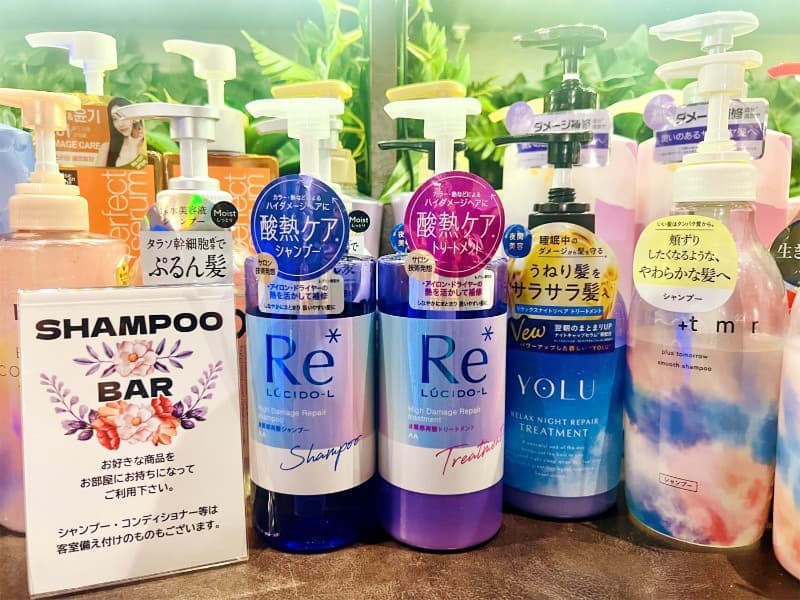 人気メーカーのシャンプーを無料でレンタルしています!客室フロアにシャンプーバーがあります!使い放題!